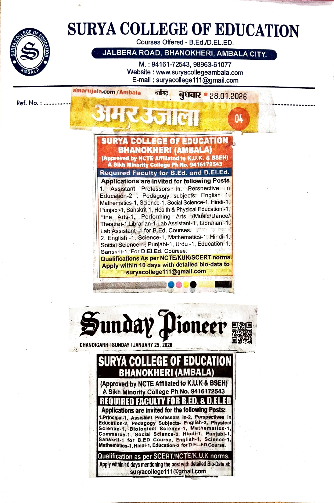 SURYA COLLEGE OF EDUCATION, BHANOKHERI ( AMBALA )